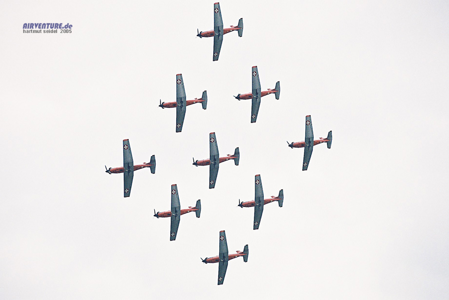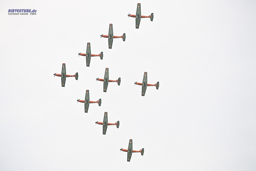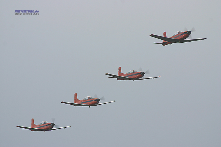 vom Team verwendete Pilatus PC-7 ist das Schulflugzeug der Schweizer Luftwaffe. Seit 1982