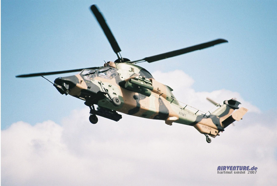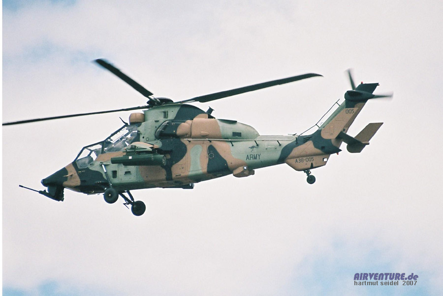 Während bei der Australian International Airshow 2005 einer der neuen Eurocopter Tiger Armed Reconnaissance Helicopter ( = ARH ) des Australian Army Aviation Corps nur im Static Display ausgestellt worden ist, war 2007 ein solcher Eurocopter Tiger auch an den Luftlandedemonstrationen beteiligt. |