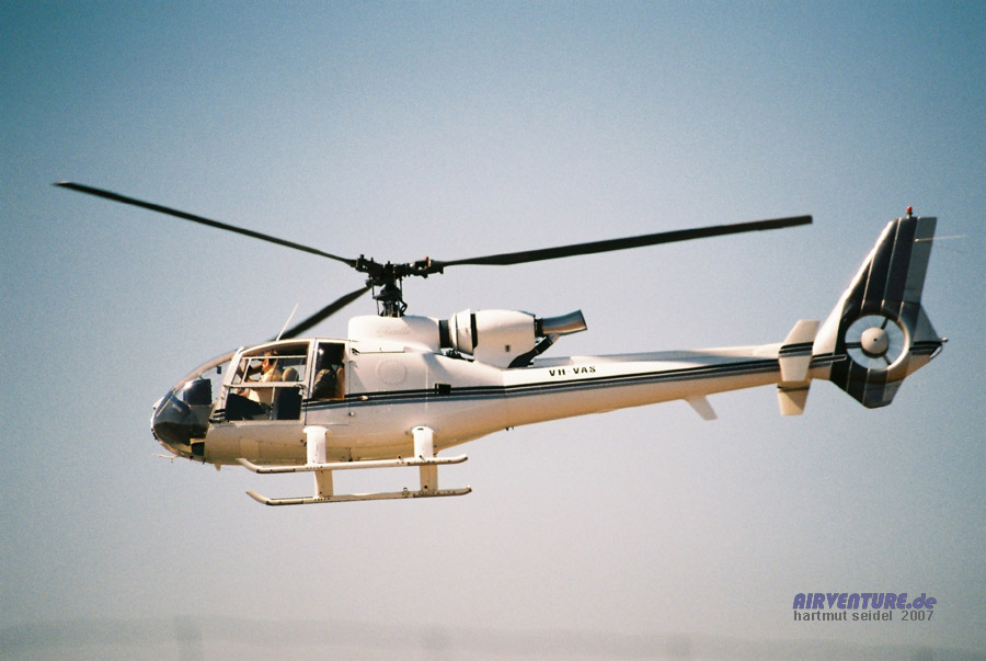 Am Haupteingangsbereich zur Australian International Airshow 2007 war wieder ein Heliport eingerichtet worden, auf dem ein reger Flugbetrieb mit einer Vielzahl von interessanten Hubschraubern stattgefunden hat. Hier landet gerade ein Hubschrauber vom Typ Aérospatiale Gazelle SA 341 G. |