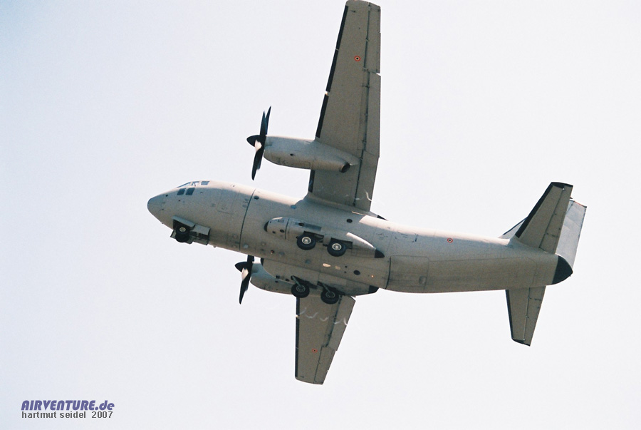 Um den Auftrag eines neuen leichten taktischen Transportflugzeugs für die Royal Australian Air Force als Nachfolger für die DHC-4 Caribou bewirbt sich auch der italienische Flugzeughersteller Alenia Aeronautica mit der zweimotorigen Turbopropmaschine vom Typ Alenia C-27 J Spartan. Bei den Flugvorführungen im Flying Display der Australian International Airshow 2007 konnten sich die Zuschauer ein Bild von den hervorragenden Flugleistungen der C-27 J machen. So hat die Besatzung mit der Maschine zum Beispiel auch mehrmals komplette Rollen geflogen, was äußerst ungewöhnlich für ein Flugzeug dieser Größe und Gewichtsklasse ist ! |