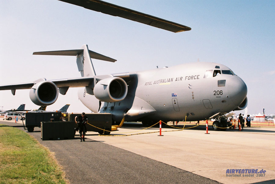Zur Erhöhung der Transportkapazität werden für die Royal Australian Air Force gerade vier schwere Militärtransportflugzeuge vom Typ Boeing C-17 Globemaster III beschafft. Die erste der vier bestellten nagelneuen Maschinen wurde im Dezember 2006 nach Australien überführt und konnte im Static Display der Australian International Airshow 2007 besichtigt werden. Die restlichen drei C-17 sollen bis Mitte 2008 geliefert werden. |