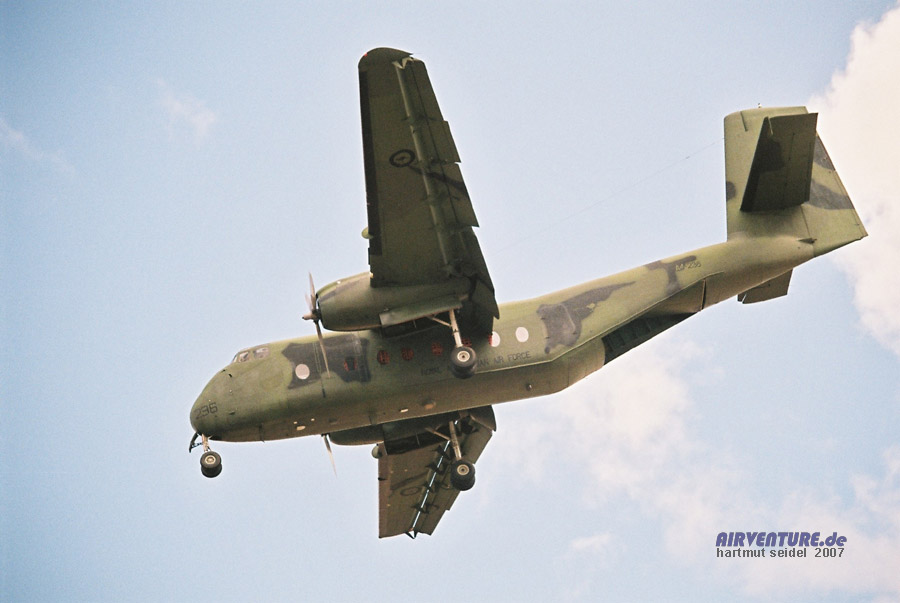 Auch eins von den äußerst robusten STOL-Transportflugzeugen vom Typ De Havilland Canada DHC-4 Caribou der RAAF wurde erfreulicherweise im Flugprogramm der Australian International Airshow 2007 gezeigt. Nach über 40 Jahren Einsatzzeit im Dienst bei der Royal Australian Air Force wird für den Flugzeugtyp Caribou nunmehr im Rahmen des Australian Defence Force AIR 8000 Programms ein Nachfolger als "Light Tactical Airlifter" gesucht. |