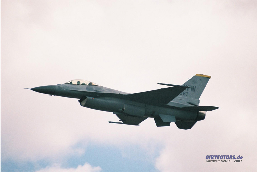 Am Flugprogramm der Australian International Airshow 2007 hat sich auch die U.S. Air Force wieder mit Solo-Displays von mehreren Maschinen beteiligt. Neben der hier zu sehenden F-16 Fighting Falcon handelte es sich dabei noch um eine F-15 Eagle und eine Transportmaschine vom Typ C-17 Globemaster III. |