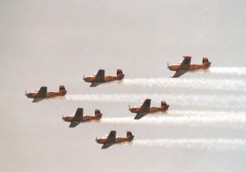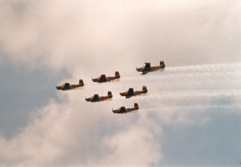 präsentierte Formationskunstflug mit der Beech T-34 Mentor |