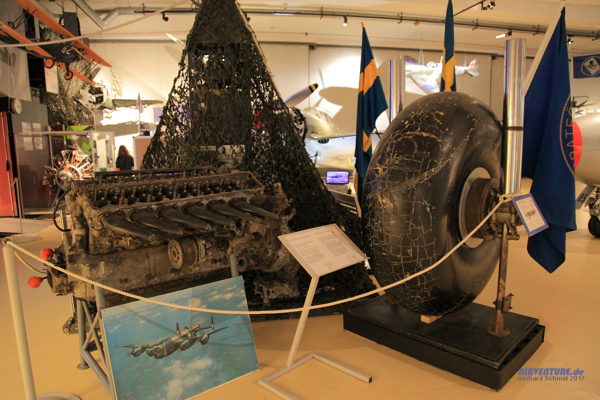Neben der ansonsten auf die Historie des Ängelholm Airfields abgestellten Ausstellung sind auch die (wenigen) Überbleibsel einer vor der Küste Schwedens abgestürzten britischen Lancaster zu sehen. |