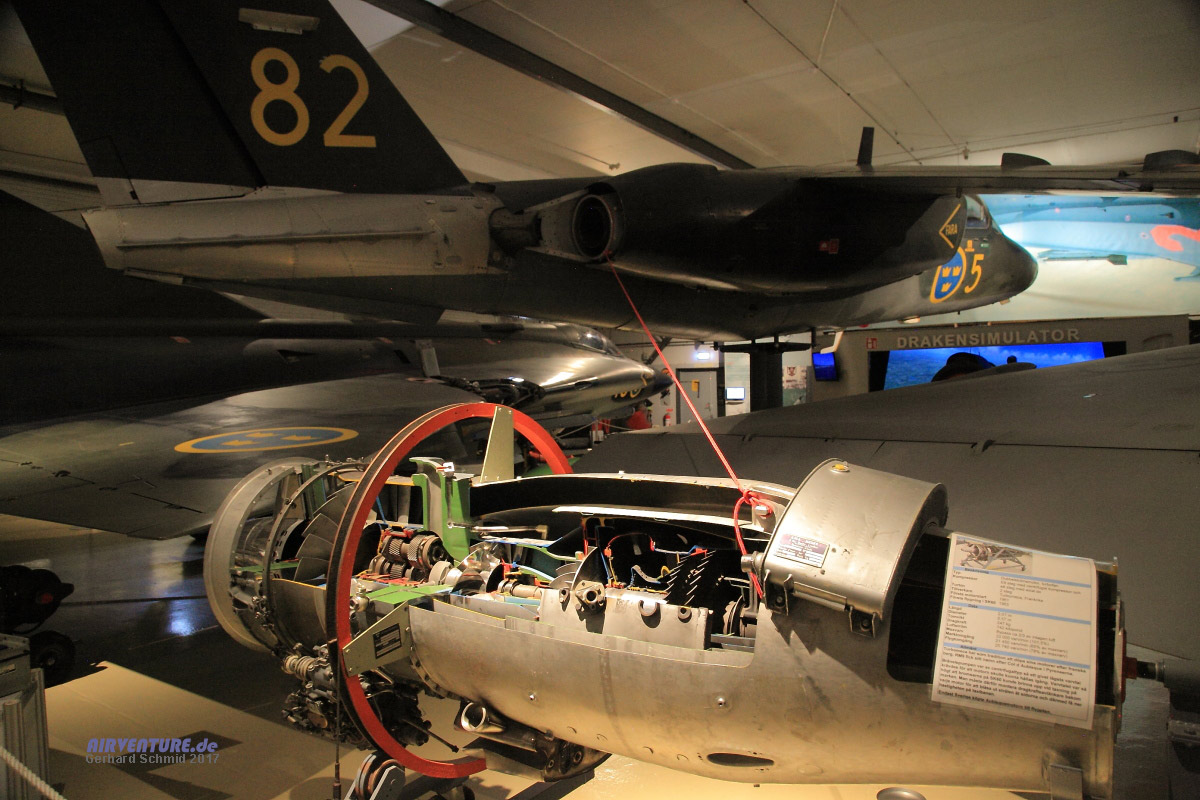 Wer es etwas genauer wissen möchte, der findet auch Details wie dieses aufgeschnittene Turbomeca Triebwerk, das zu einer Saab 105 gehört. |