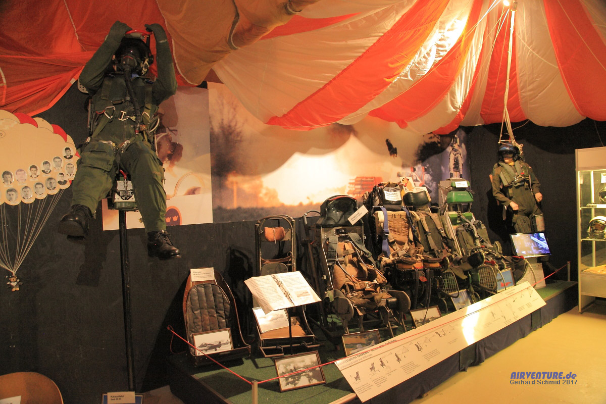Für Cockpitfans und Simulatorflieger nicht erforderlich, für die echten Piloten die Lebensversicherung: Saab hat seine Flugzeuge mit selbst entwickelten Schleudersitzen ausgerüstet, die hier ausgestellt sind. |