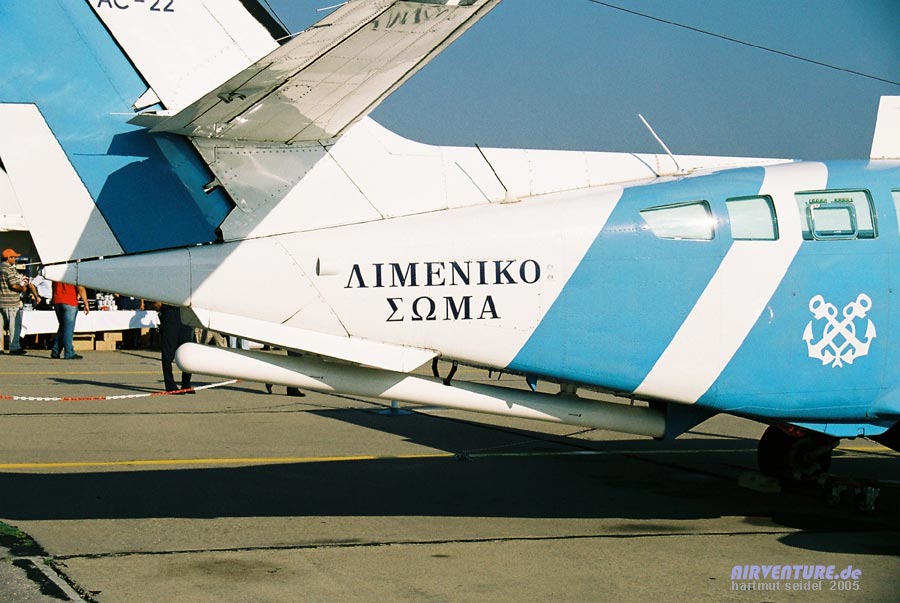 Schriftzug "Hellenic Coast Guard" auf der linken Seite in Flugrichtung in