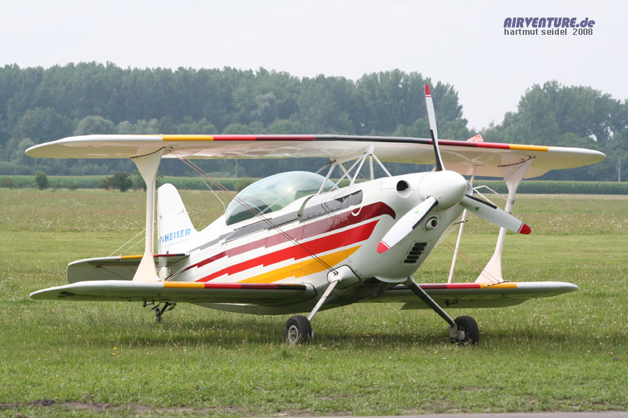 AirVenture-Teammitglied Gerhard Schmid war mit einem Kunstflug-Doppeldecker vom Typ Pitts Special S-1S zur Augsburg Airshow 2008 geflogen. Die Maschine hatte im Static Display die Parkposition direkt neben der PZL 106 Kruk von Dieter Gehling. |