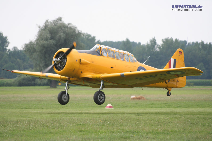 Für einen Preis von 200 Euro waren während der Augsburg Airshow 2008 auch etwa zwanzig Minuten dauernde Warbird-Mitflüge in dieser North American Harvard der Haltergemeinschaft um Georg Raab möglich. |