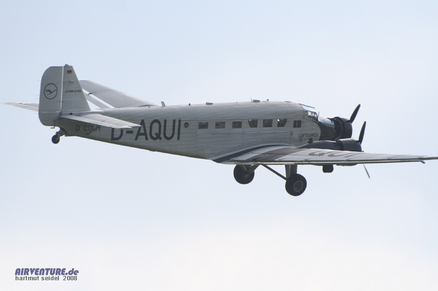 Die flugbegeisterten Besucher der Augsburg Airshow 2008 hatten eine Vielzahl von Möglichkeiten, während der Veranstaltung vor Ort Rundflüge durchzuführen. Die grösste Maschine im Rundflugbetrieb war hierbei die Junkers Ju 52 der Deutsche Lufthansa Berlin-Stiftung. |