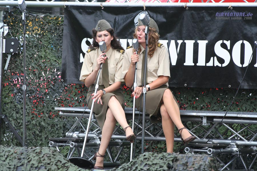 Zum Rahmenprogramm der Augsburg Airshow 2008 gehörten auch musikalische Darbietungen der niederländischen "Sgt. Wilson's Army Show"-Gruppe, bestehend aus einem Sänger und drei Sängerinnen, wobei die Sängerinnen erfreulicherweise auch einen nicht unbeträchtlichen optischen Reiz geboten haben..... |