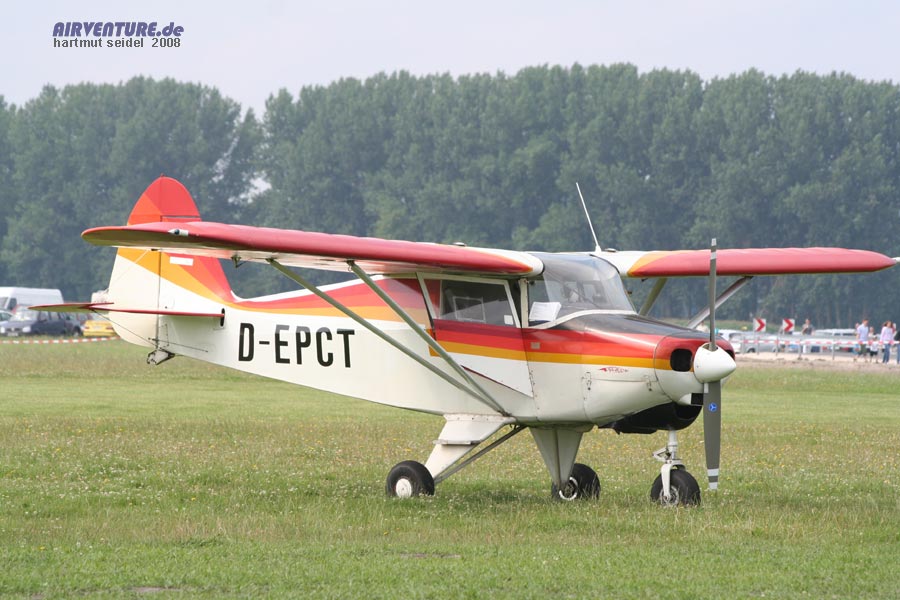 Im Flugprogramm der Augsburg Airshow 2008 wurden auch Vorführungen mit mehreren Segelflugzeugen gezeigt, die von Schleppflugzeugen unterschiedlichen Typs auf Ausgangshöhe gebracht worden sind. Als Schleppflugzeug kam dabei unter anderem diese interessante alte Maschine vom Typ Piper Colt 150 ( Baujahr 1961 ) zum Einsatz. |