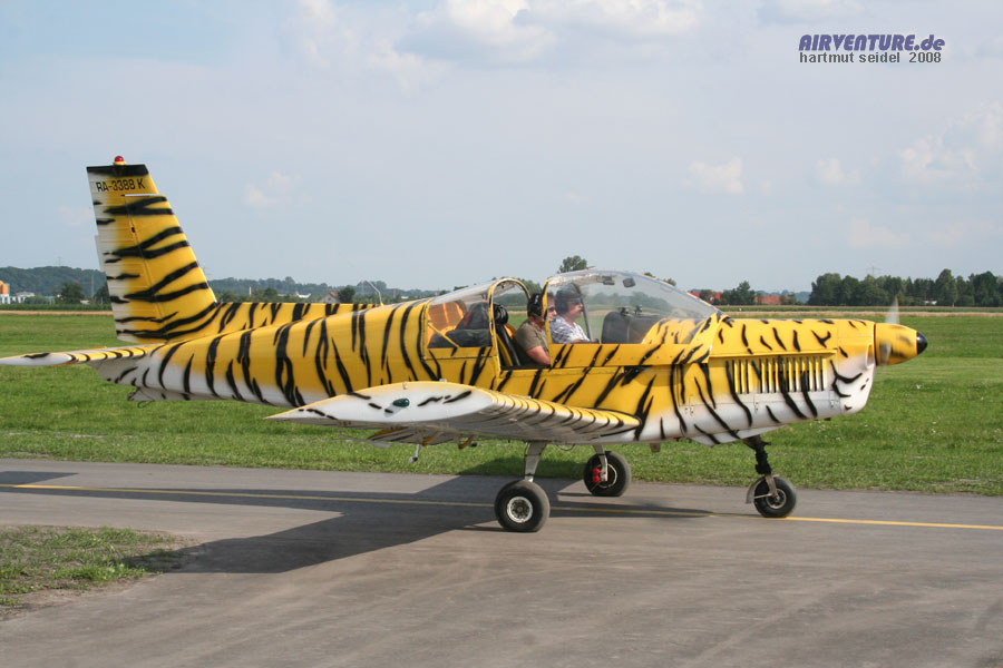 Für 30 Euro waren auch fünfzehnminütige Mitflüge in dieser mit einem eindrucksvollen Tiger-Anstrich versehenen Maschine vom tschechischen Typ Zlin 142 möglich. |