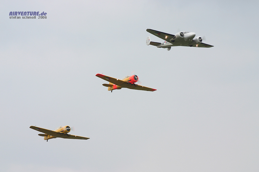 gehörte auch die routinierte Vorführung der Holländer mit Beech-18 und Harvard im
