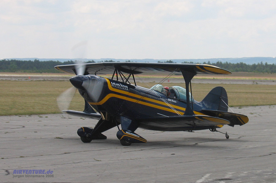 taxiing towards the Grandstand after a great show, in which we could see his trademark,