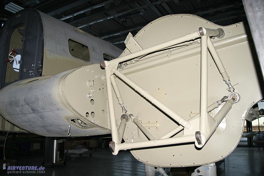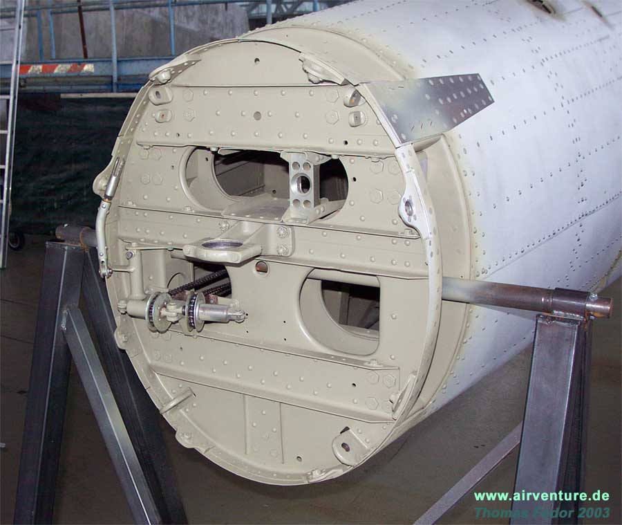 Leitwerksteile und den Durchgängen für die Anlenkungen der Ruder und Trimmruder.