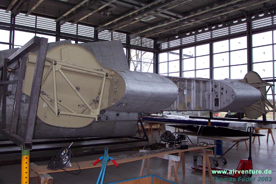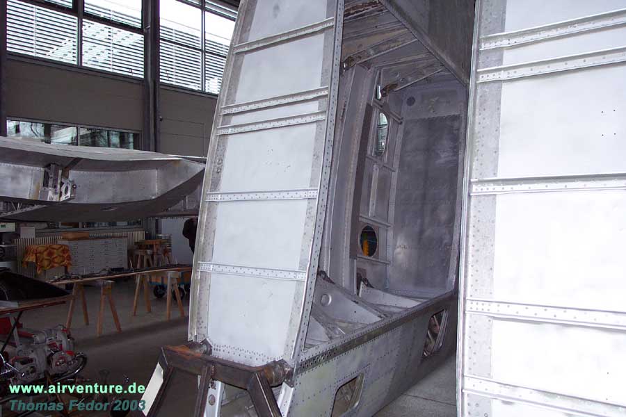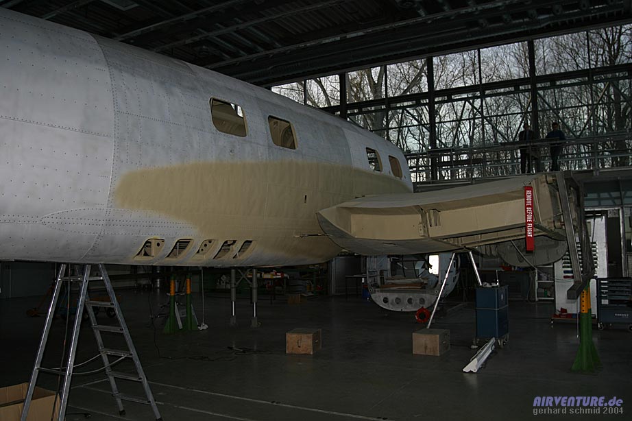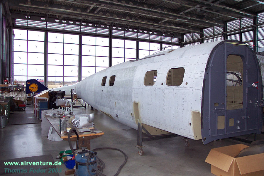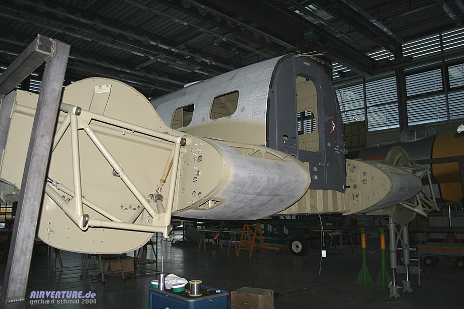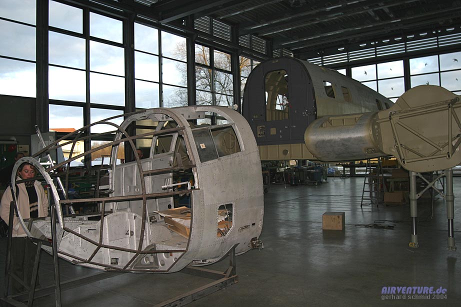 Restaurierungsarbeiten C.A.S.A 2111 in der Flugwerft Schleißheim - Februar 2004 |