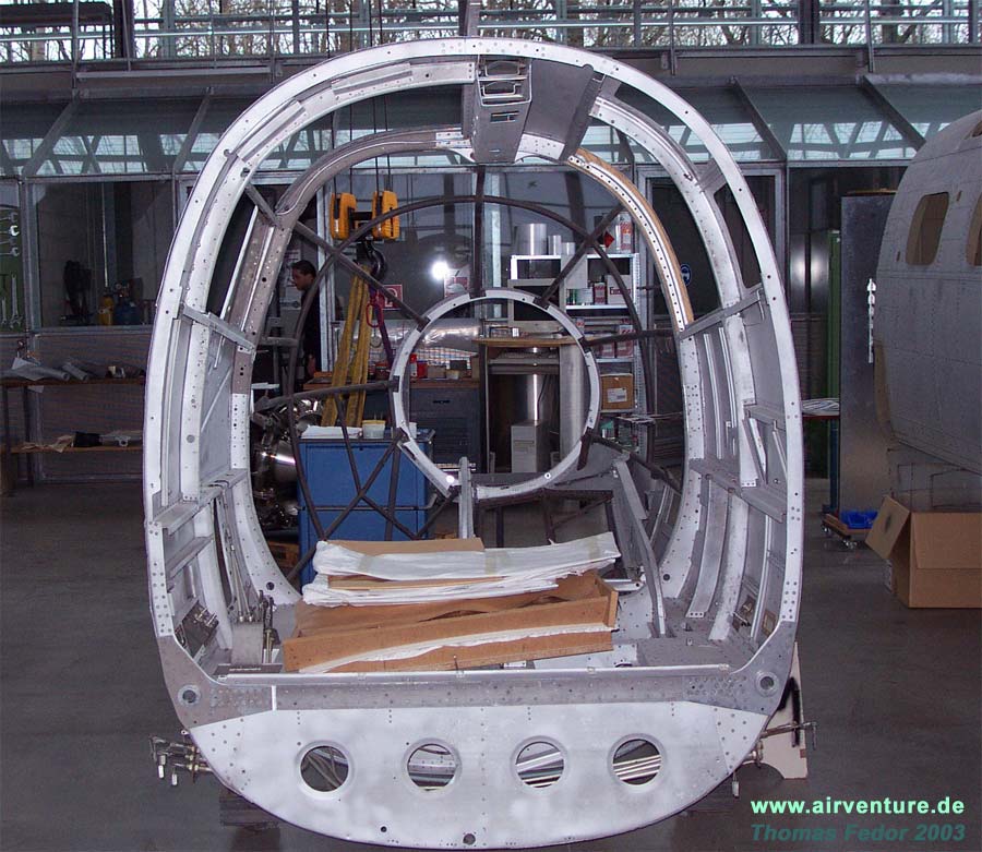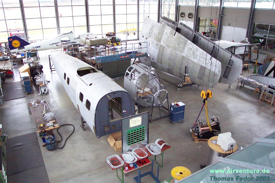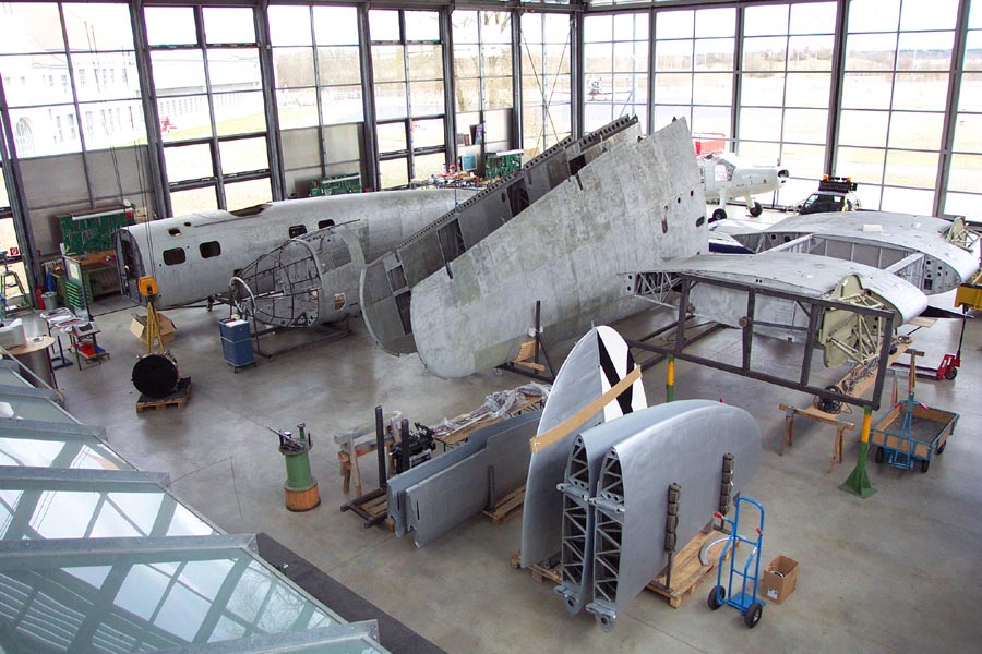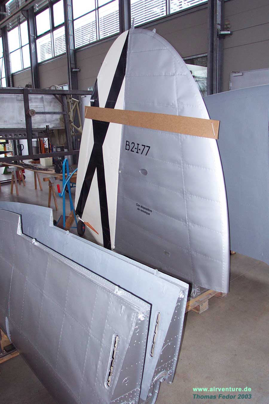 Restaurierungsarbeiten C.A.S.A 2111 in der Flugwerft Schleißheim - Februar 2004 |