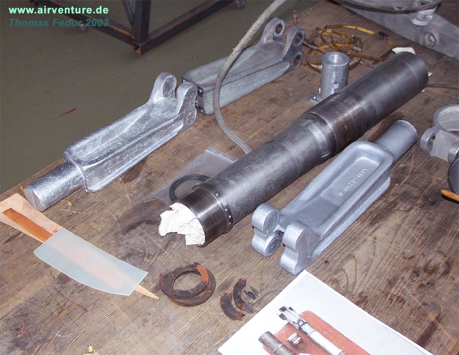 der Montage des Hauptfahrwerkes begonnen. Viele Fahrwerksteile mußten neu gefertigt