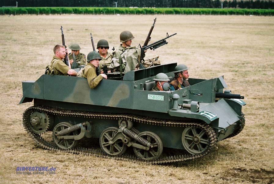 "Universal Carrier" mit bis an die Zähne bewaffneten alliierten