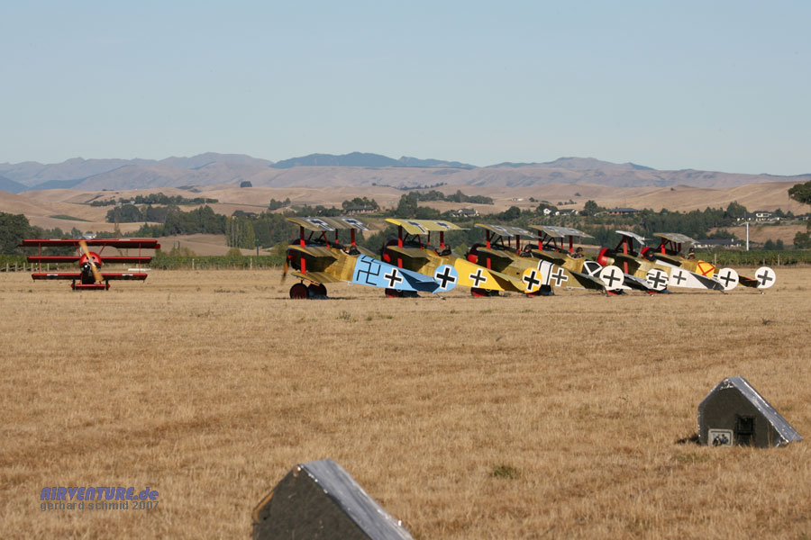 Die wunderschönen Nachbauten sind so weit wie möglich originalgetreu. Bei der Classic Fighters Airshow 2007 trugen alle Dreidecker historische Anstriche der berühmten Jasta 11. |