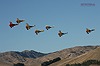 Dicht geschlossen zieht der "Fliegende Zirkus" vor der beeindruckenden Kulisse der Hügel von Marlborough vorbei. Die bereits tief stehende Nachmittagssonne verleiht dem Bild eine einmalige Stimmung. |