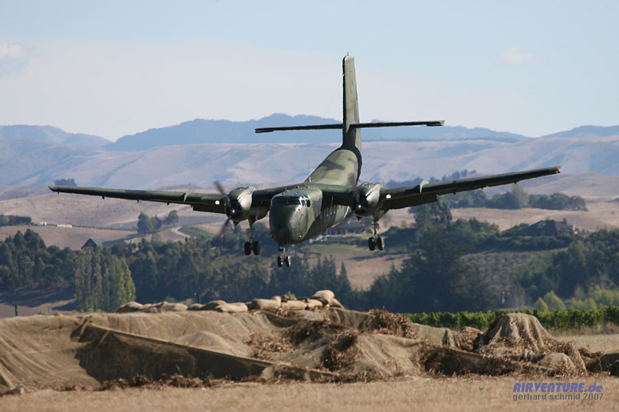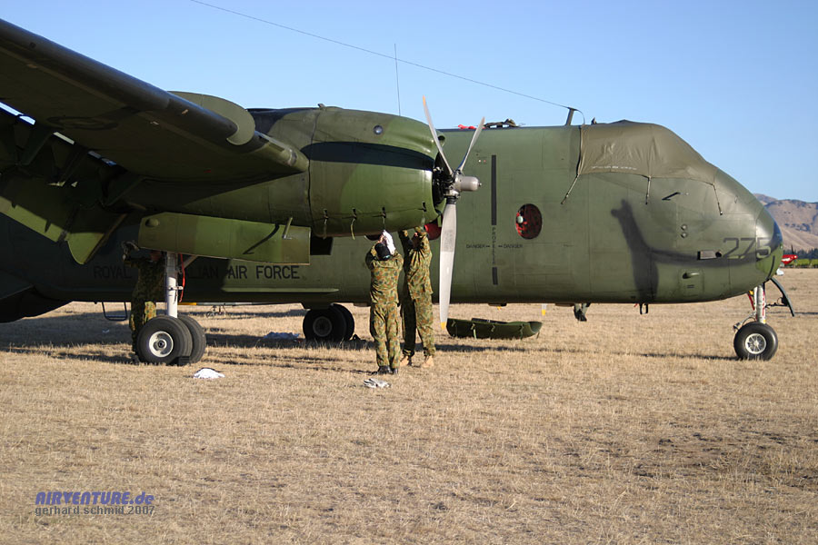 Aus Australien kam eine De Havilland Canada DHC-4 "Caribou" des No 38 Squadron von der RAAF Base Amberly angereist. Nach der Landung werden von der Crew noch einige Checks vorgenommen. |