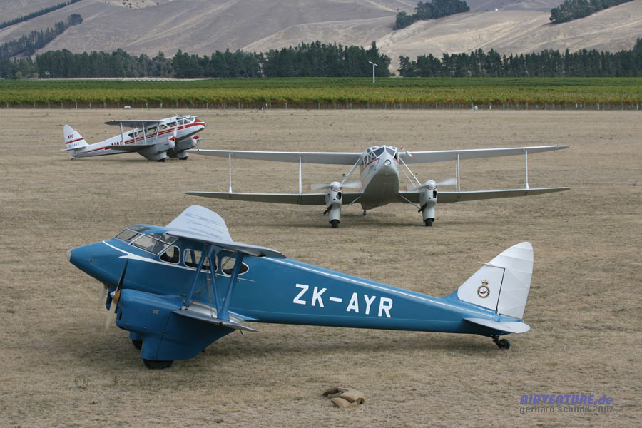 Die Fantastische Kulisse der sanften Hügellandschaft ist wie gemacht für eine Oldtimer-Airshow. Mit den "Dragons" und "Dominies" wurden auch Passagierflüge veranstaltet. |
