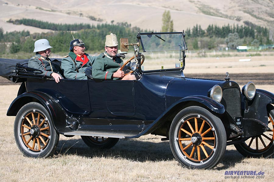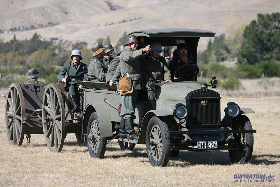 Im Rahmen des "The Great War Scenario & Display" kamen neben den WW I Flugzeugen auch Bodentruppen zum Einsatz. In historischer Kleidung und mit ebenso historischen Fahrzeugen rückten sie zur "Front" vor. |