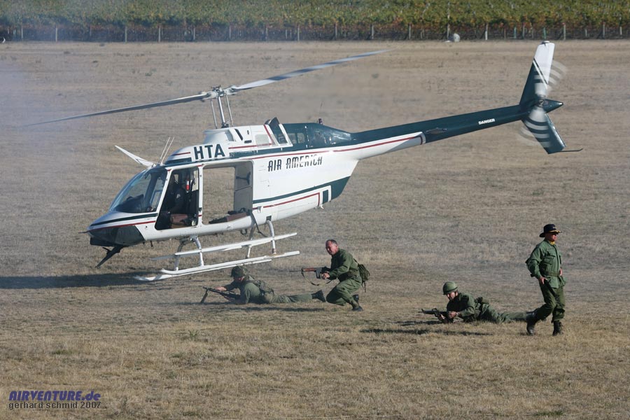 Zum Thema "Air America" bot die Classic Fighters Airshow auch eine Ground Theater Einlage. Wer den Film "Apocalypse Now" kennt, der erinnert sich an die Szene, in der Lt. Col. Kilgore sein Surfbrett an einen umkämpften Strandabschnitt fliegen lässt. |