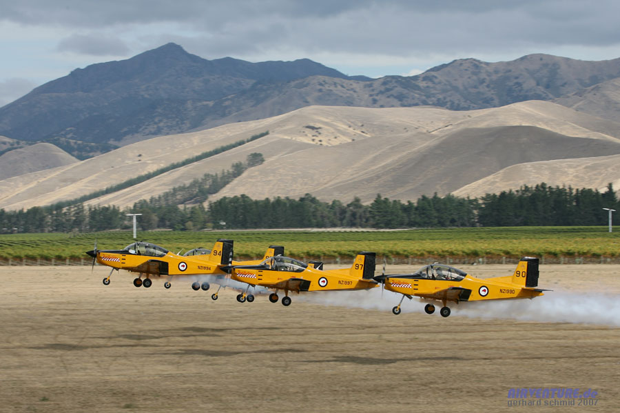 Die "Red Checkers" sind das offizielle Aerobatic Team der RNZAF. Schon kurz nach dem zweiten Weltkrieg flog das Team mit Harvards, den Namen "Red Checkers" erhielt die Formation 1967. Seit 1980 ist das Team mit sechs CT-4B "Airtrainer" ausgestattet. |