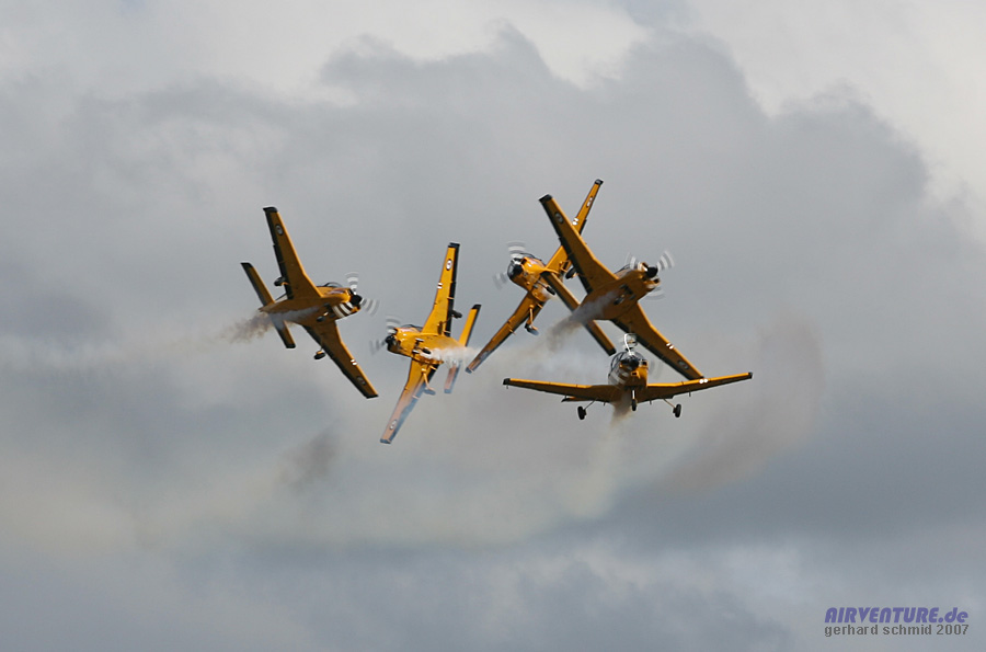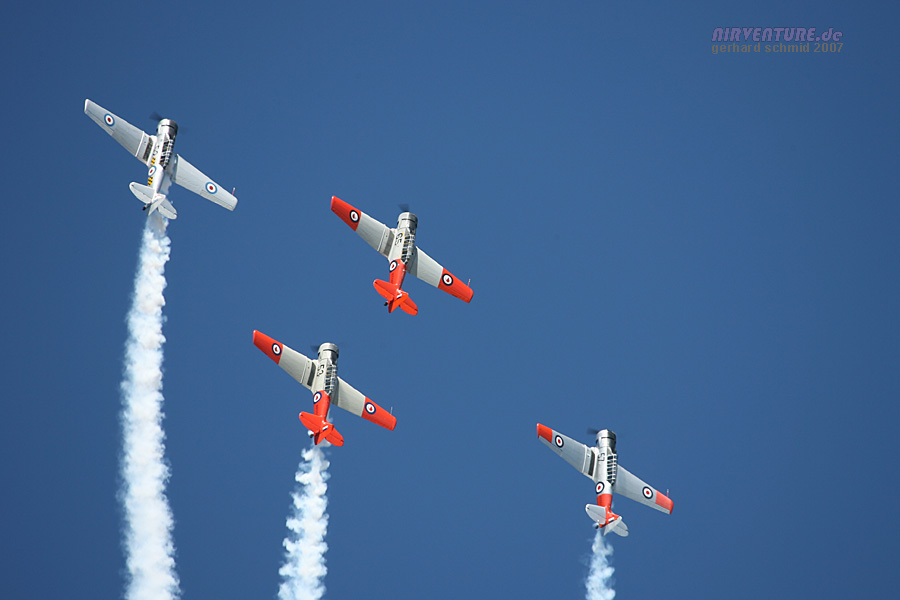 Nicht nur bei der "Tora! Tora! Tora!" Vorführung waren die Harvards mit von der Partie. Auch schöner Formationskunstflug mit den berühmten Trainern stand auf dem Programm. |