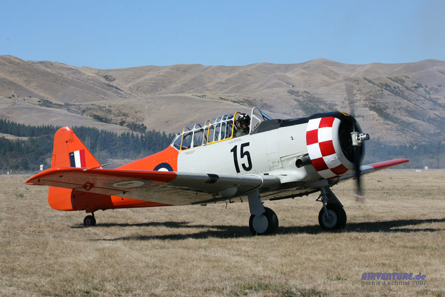 Auf der Base Ohakea ist die Central Flying School, die kleinste Einheit der RNZAF, stationiert. Diese Harvard MkIII wird als Showflugzeug flugfähig erhalten. |