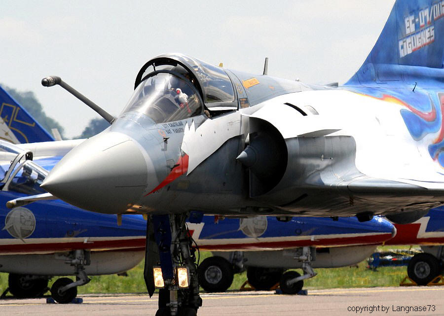 Die französische Mirage 2000-5F wartet auf die Startfreigabe zu einem ihrer letzten Solodisplays. Ab dem nächsten Jahr wird sie durch das modernere Muster Rafale ersetzt.