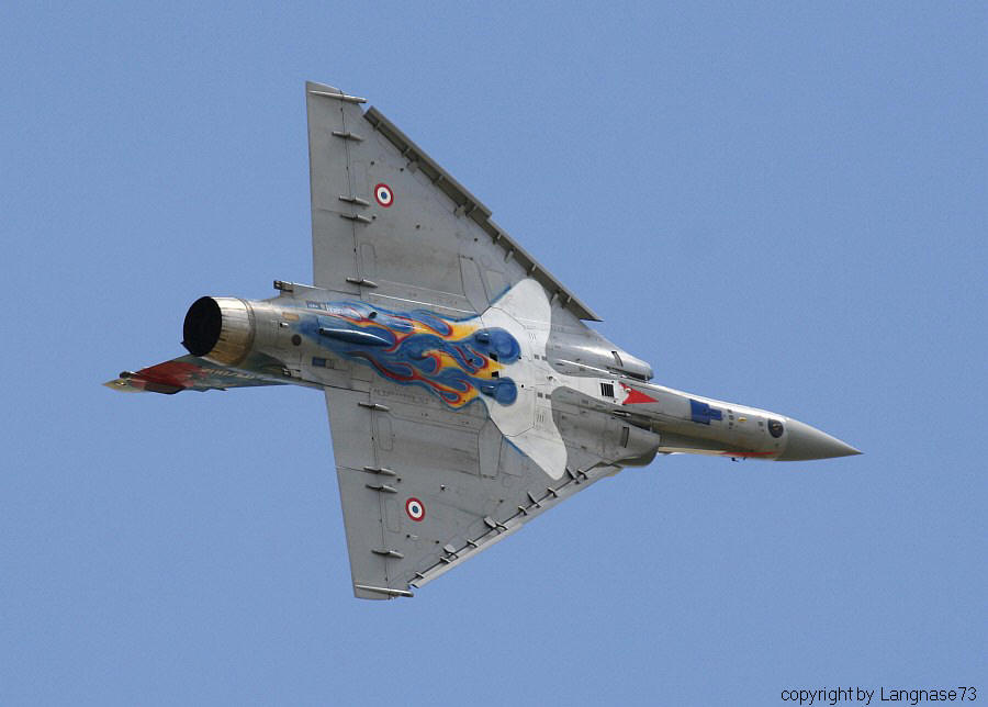 Mit ausgefahrenen Vorflügeln präsentiert sich die Mirage 2000 zum Fotopass.