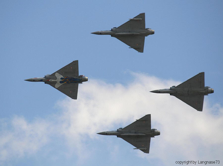 Die lokalen Mirage Abfangjäger in Viererformation bei ihrem Display.