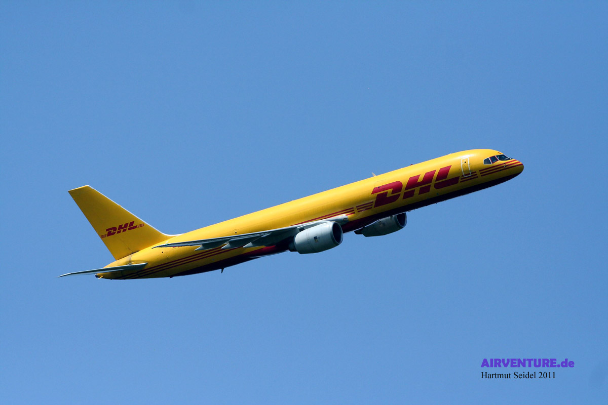 Die im Sonntags-Flugprogramm gezeigte Boeing 757 Frachtmaschine der DHL war das größte Flugzeug im Flying Display der Dittinger Flugtage 2011. |
