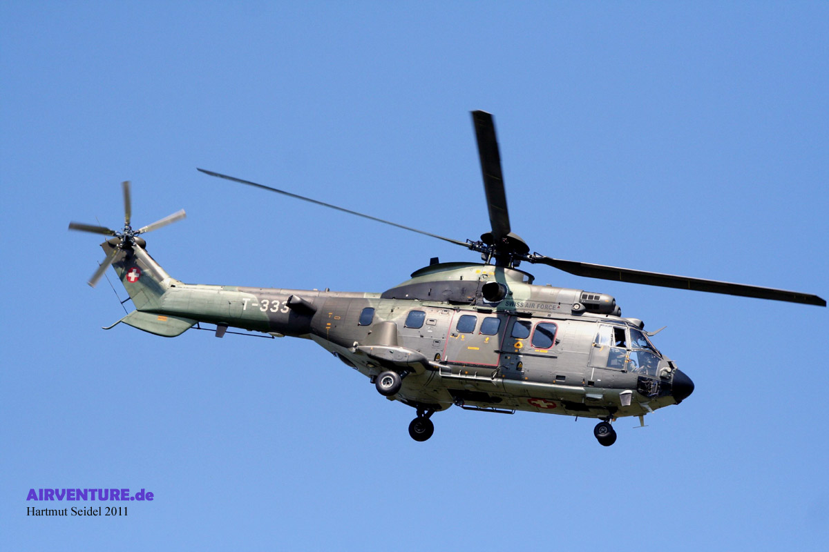 Neben der Patrouille Suisse und der F/A-18 Hornet hat sich die Schweizer Luftwaffe auch noch mit dem Super Puma Display Team an den Flugvorführungen im Samstags-Flugprogramm der Dittinger Flugtage 2011 beteiligt. |