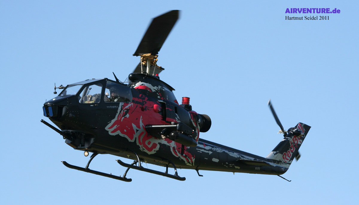 Die Cougar-Vorführung der Schweizer Luftwaffe ist leider nur im Samstags-Flugprogramm gezeigt worden. Erfreulicherweise war aber das Solo Display von Siegfried Schwarz mit diesem ehemaligen Kampfhubschrauber vom Typ Bell TAH-1F ( auch bekannt als "Huey Cobra" ) aus der Flotte der österreichischen "Flying Bulls" an beiden Tagen der Dittinger Fugtage 2011 zu sehen. |