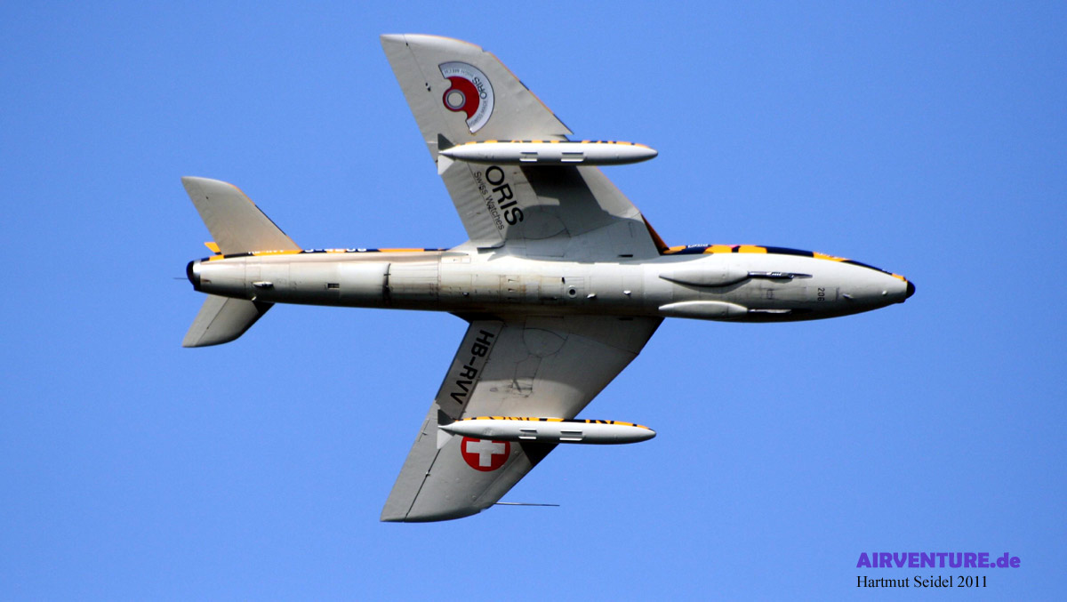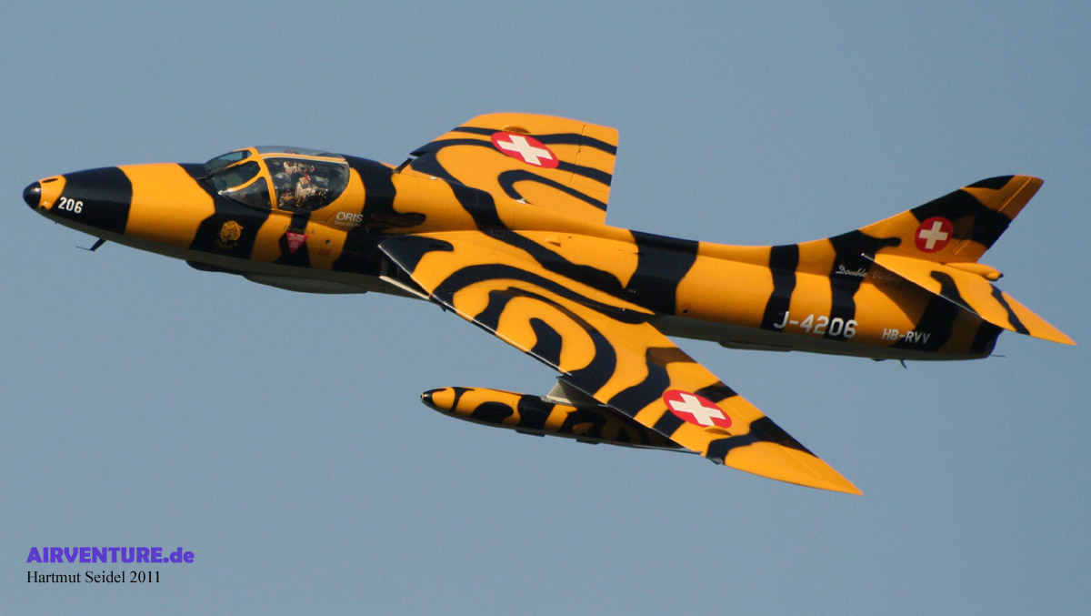 Mit der erstklassigen Vorführung dieser Maschine vom Typ Hawker Hunter T. Mk 68 des Verein Hunter Flying Group war im Flugprogramm der Dittinger Flugtage 2011 auch ein historischer Jet zu sehen.