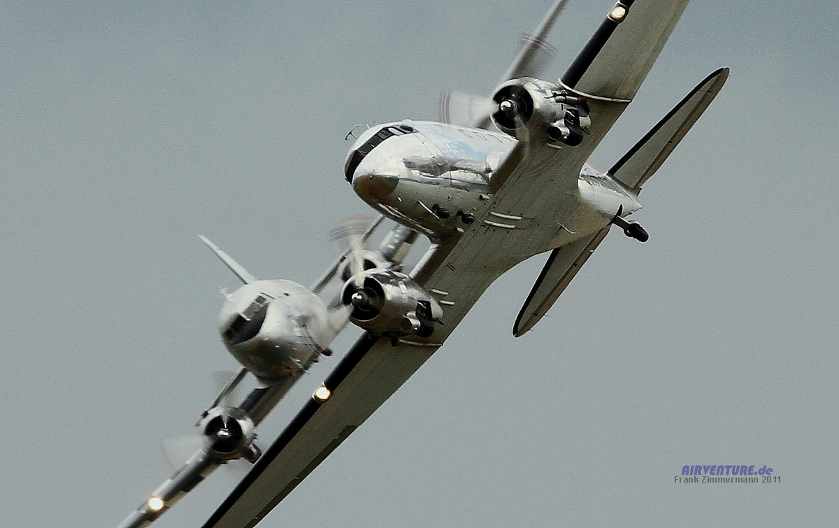 Was diese zwei DC-3 während des Displays zeigten war schon fast Kunstflug. Atemberaubend, wie agil die schwerfällig aussehenden Transportflugzeugen in den Händen von geübten Piloten sind. |