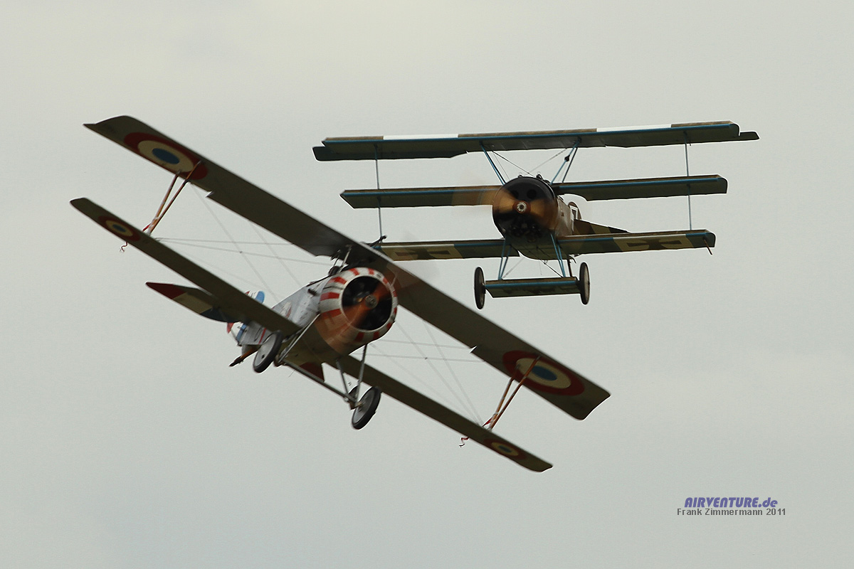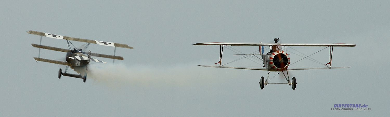 Einen angedeutenen Luftkampf zwischen zwei Replikas aus der Zeit von 1915 bis 1918 gab es auch zu sehen. Eine Fokker DR. 1 und eine Nieuport 17 führten einen Dogfight mit engen Kurven und Loopings vor. |