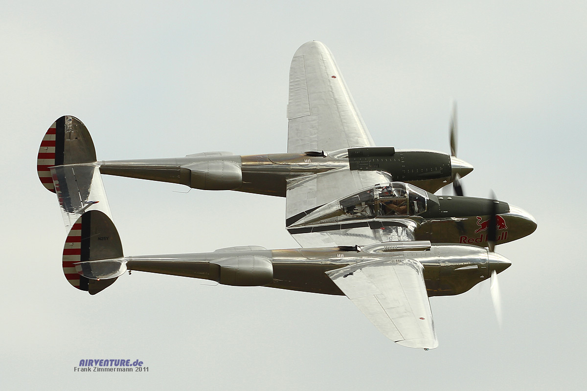 Es klang vielversprechend, was 2011 zu den Flying Legends nach Duxford kommen sollte. Schon im Voraus war davon die Rede, dass die "Flying Bulls" mit P-38 Lightning und F-4U Corsair ihre Aufwartung machen wollten. Mal wieder eine Lightning auf dem "heiligen Rasen" von Duxford, das war eine verlockende Aussicht. Nachdem 1996 die Lightning der Fighter Collection abgestürzt war und die Überführung der "Glacier Girl" leider nicht zustande kam, wäre die hochglanzpolierte Red Bull Lightning das Highlight der Show.