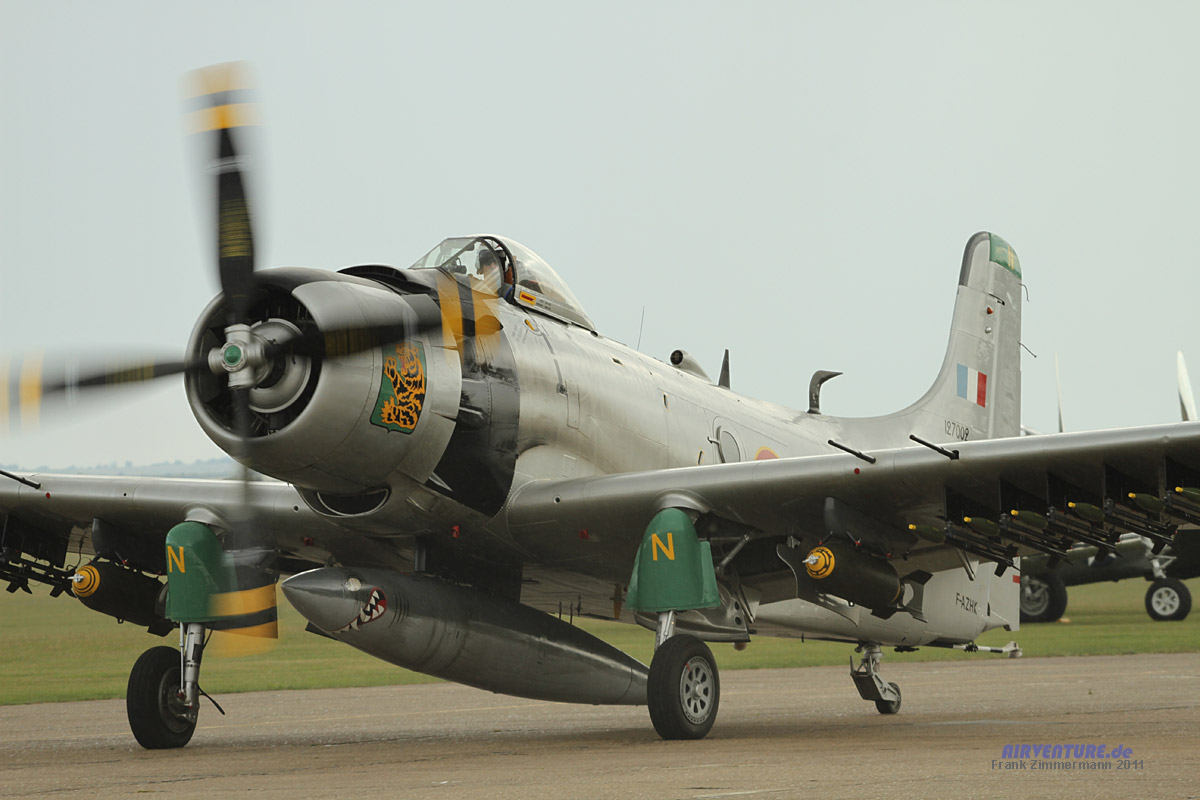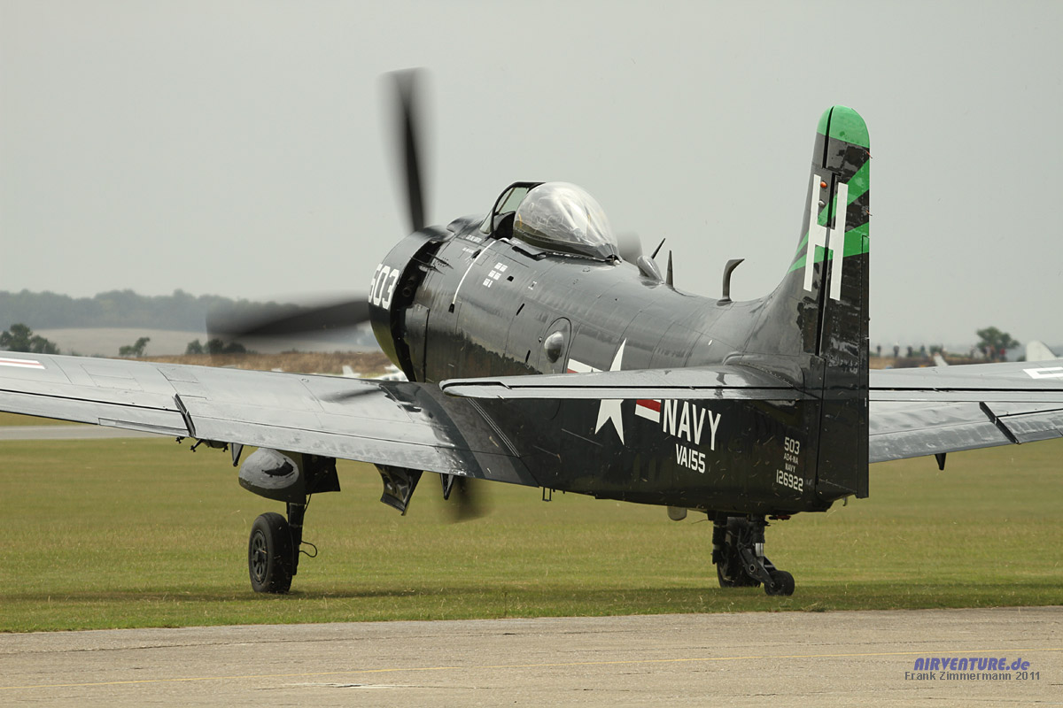 Nein, diese Maschine ist keine Neuerwerbung der Fighter Collection. Es ist eine alte Bekannte mit neuem Anstrich. Die AD-4N gehört der Kennet Aviation und ist langjähriger Teilnehmer bei den Flying Legends. Sie trägt jetzt die Markierungen des Piloten Mike Stanton, der die Maschine während des Koreakrieges flog . |