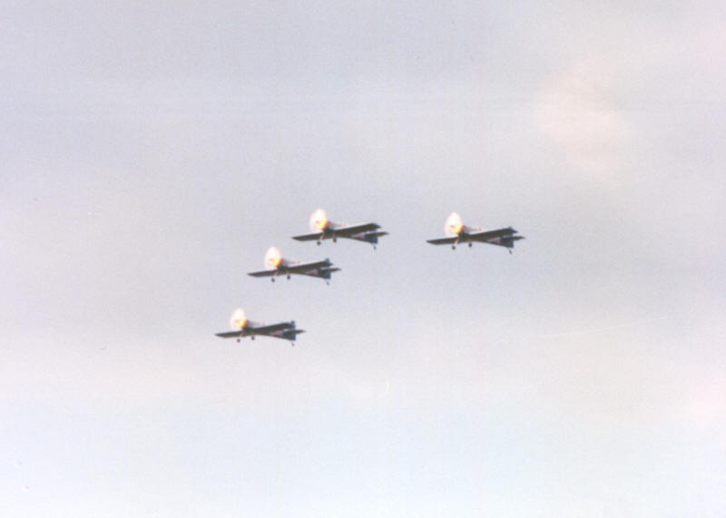 Hier machen sich die vier Maschinen vom Typ Zlin Z - 50 LX des berühmten tschechischen