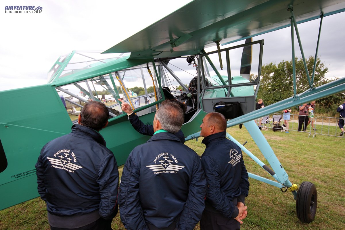 Aber dies war eigentlich nur eine Momentaufnahme aus Soest. Es gab freilich viel mehr zu sehen und die eigentlichen Highlights habe ich noch gar nicht alle angesprochen: P51 Mustang, Jakowlew Jak 3-U, Pioneer Team aus Italien und die Focke-Wulf 190 (Replikat). Letztere war dann aber wegen technischer Probleme leider doch nicht vor Ort. Dafür ist unangekündigt die DC3 der Classic Airlines aus Schiphol zu einem Überflug vorbei gekommen und präsentierte Ihren neuen 2016er Anstrich. Neben vielen kolbengetriebenen Oldtimern (alleine vier Boeing Stearman waren vor Ort) hatte es der Soester Verein sogar geschafft einen Jet zu präsentieren: Die Fouga Magister aus Paderborn sorgte mit Ihren Überflügen für die Überraschung des Tages.