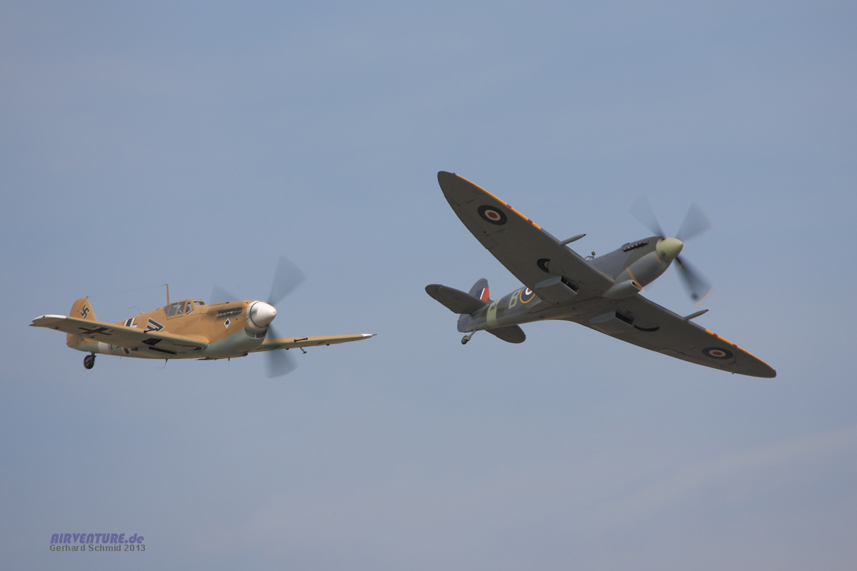Von Chancengleichheit kann keine Rede sein: Die Spitfires der verschiedensten Modellreihen waren zahlenmäßig einfach überlegen. Und einige davon auch leistungsmäßig. Und doch teilten sie eie Gemeinsamkeit: Den Rolls Royce Merlin unter der Cowling. |