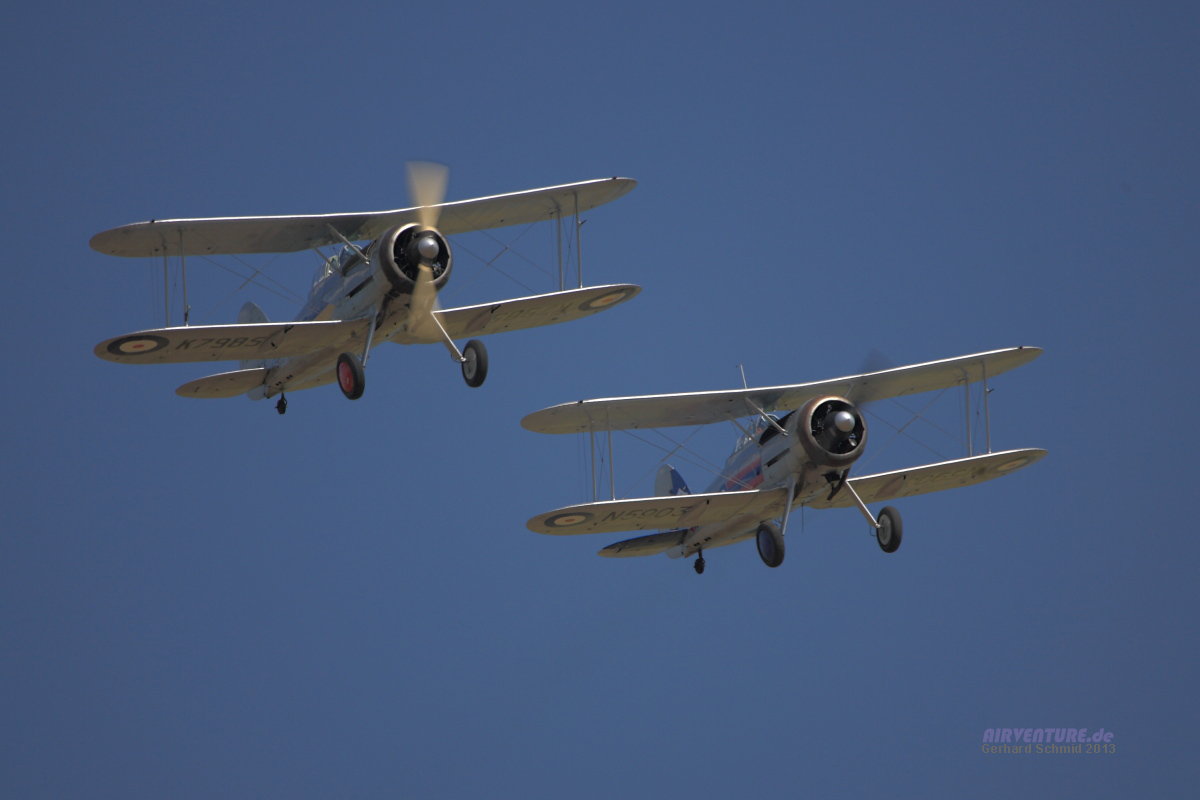 In den vierziger Jahren war dies ein ein alltäglicher Anblick. Heute ist eine Formation zweier Gloster Gladiators eine Sensation. Seit vielen, vielen Jahren gab es ein solches Bild nicht mehr zu sehen. |