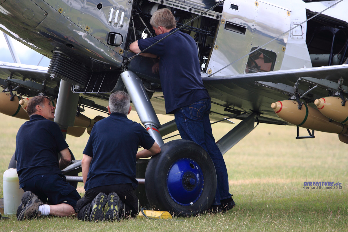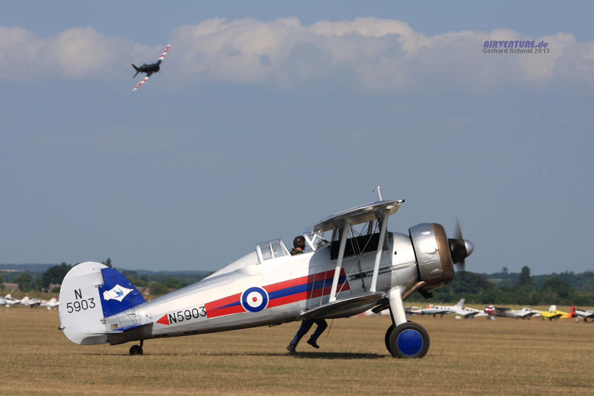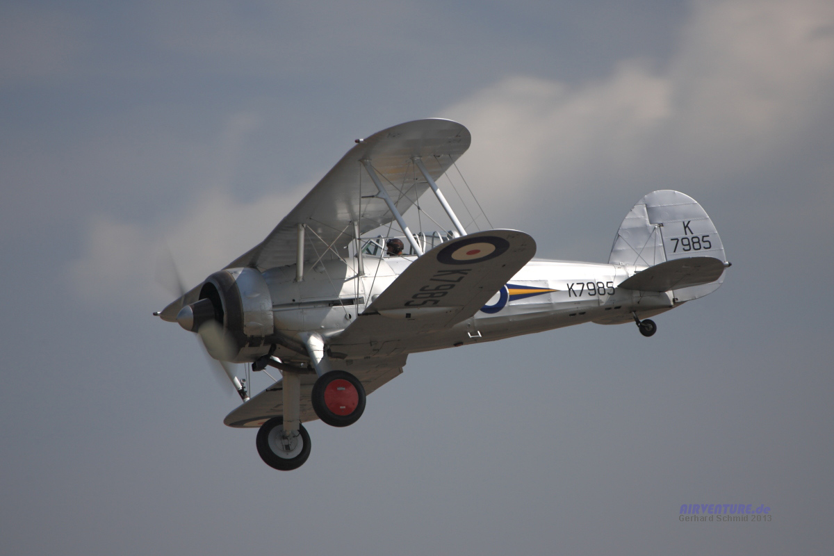 Auch wenn dieses Bild den Eindruck erweckt - die Gloster Gladiator der Fighter Collection ist kein Tretmobil. Die 1939 gebaute Gladiator II N5903 ist dank ihres 830 PS starken Bristol Mercury Sternmotors ein erstaunlich agiles und robustes Flugzeug. |